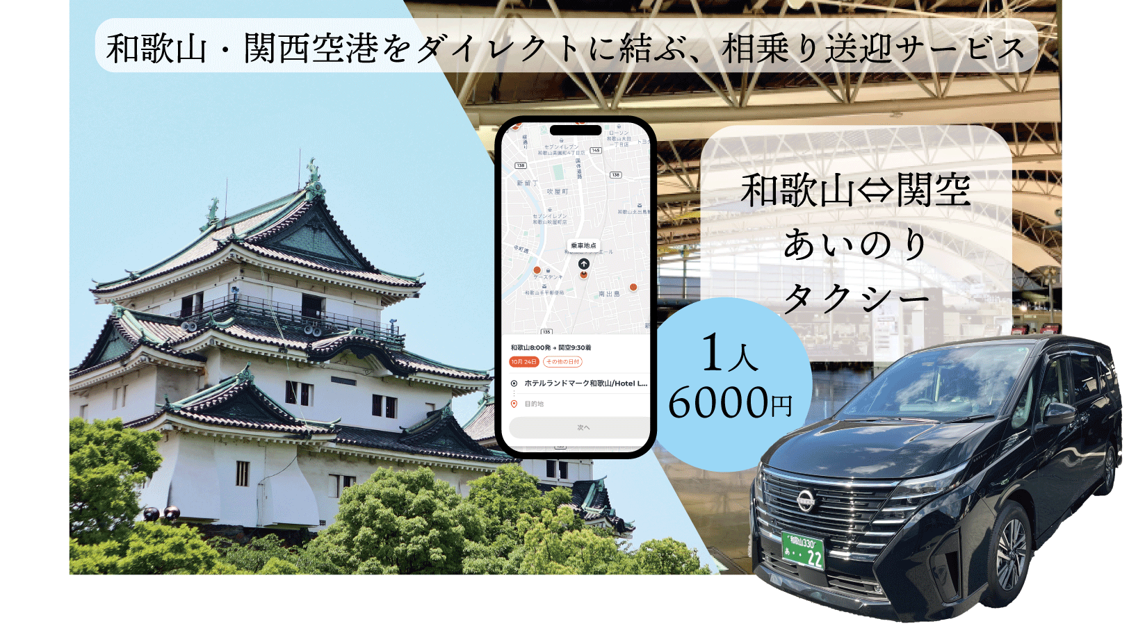 和歌山—関西国際空港をダイレクトに結ぶ、事前予約制の相乗り送迎サービス。